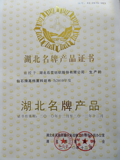 “仙石”牌布料獲湖北省工商局消費(fèi)者滿意商品稱號 |