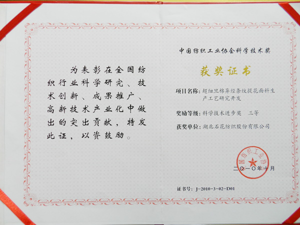 “超細(xì)旦棉異經(jīng)提花面料”獲湖北省“科技進(jìn)步創(chuàng)新”獎(jiǎng) |