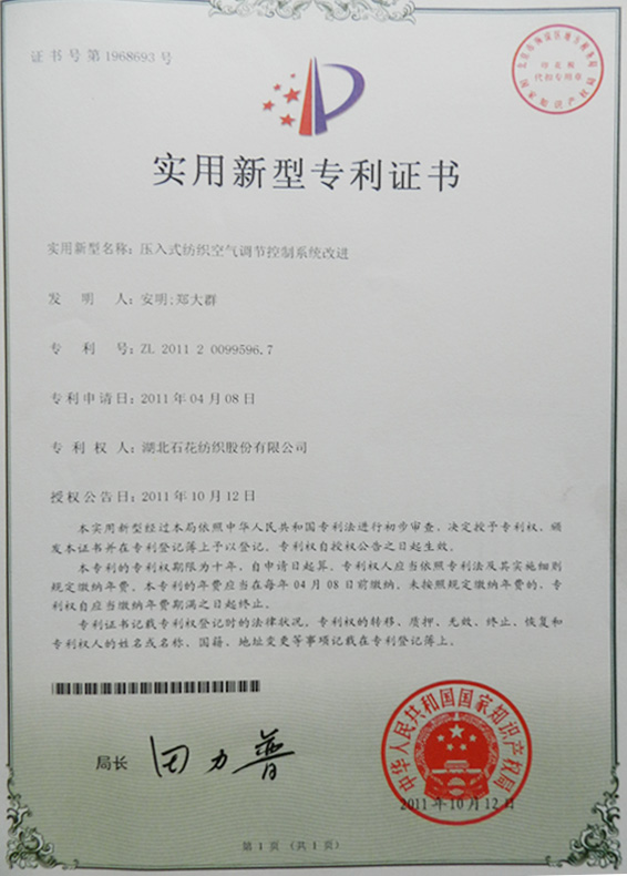 湖北名牌產(chǎn)品 | 實(shí)用新型專利證書 |